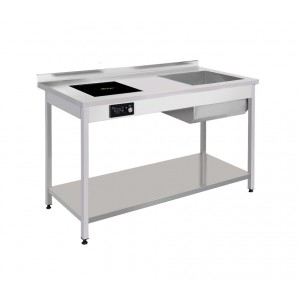 Производственный стол-мойка со встроенной индукционной плитой КИЙ-В СТМВК-4-1І. 1С (1500х600, 3,5 кВт)